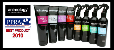 Consisting of four shampoos, two no-rinse shampoos and two deodorizing sprays, the new Animology range comes in eye catching designer packaging, they smell fantastic, clean wonderfully and are sensibly priced. All of the products offer superior odour control and have a low foam formula making them easier to rinse off a dogs coat. Animology has already proven tremendously popular in the UK and was recently awarded BEST PRODUCT 2010! By the UK's Pet Product Retailers Association, as voted for by the British independent pet retailers.